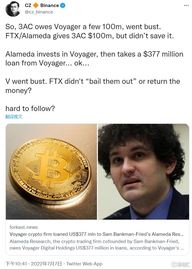6月中旬,加密货币借贷平台Celsius宣布暂停取款,资金池出现问题;7月8日,借给三箭资本约6.66亿美元加密资产的Voyager Digital也在美国申请了破产保护。除此之外,包括FTX、BitMEX、Binance等大量机构都有三箭资本的坏账,就差去办公室门口拉横幅了。由此带来的极端恐慌情绪,让大批无关“加密银行”都急忙出来“否认三连”撇清关系,安抚用户。