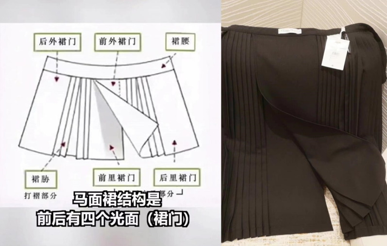 服装设计师米小姐认为,裙装中运用打褶、前后开衩等元素很常见,具体还需看裙子的廓形、版型、面料、色彩以及制作工艺与传统马面裙究竟有多少相似度。