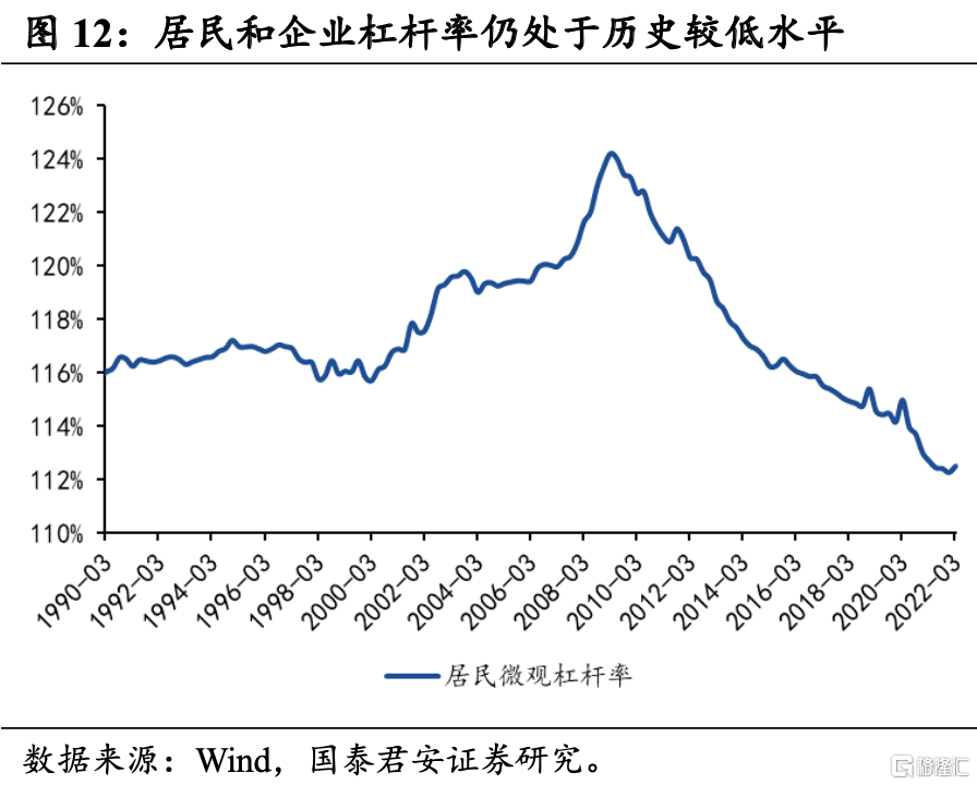 非金融企业部门:非金融企业微观杠杆率(=非金融企业部门总资产/非金融企业部门净资产)在疫情前期间出现快速下降,比疫情前下降13.4个百分点,至181.6%,企业部门资产负债表较为健康,发生系统性或债务风险的概率较低。