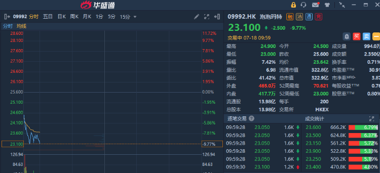 泡泡玛特中期净利或下滑最多35%,公司股价大跌近10%,泡泡玛特发布公告,预期集团上半年收入可能同比增长不低于30%;溢利较去年同期将取得减少不高于35%。泡泡玛特董事会认为,业绩波动主要与疫情反复、疫情影响客流量及消费者消费意欲减弱、前期业务扩张导致费用较去年同期增长等因素有关。
