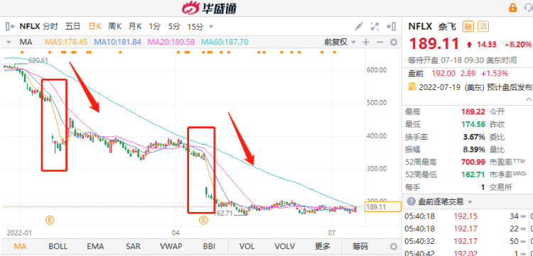 年内奈飞在前两次公布财报时,当日股价均受业绩拖累暴跌: