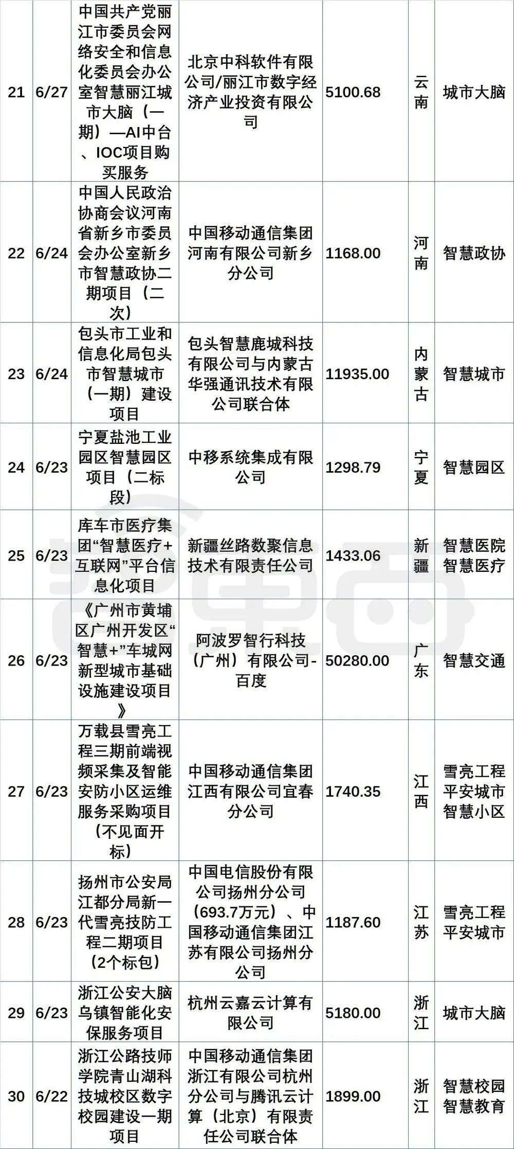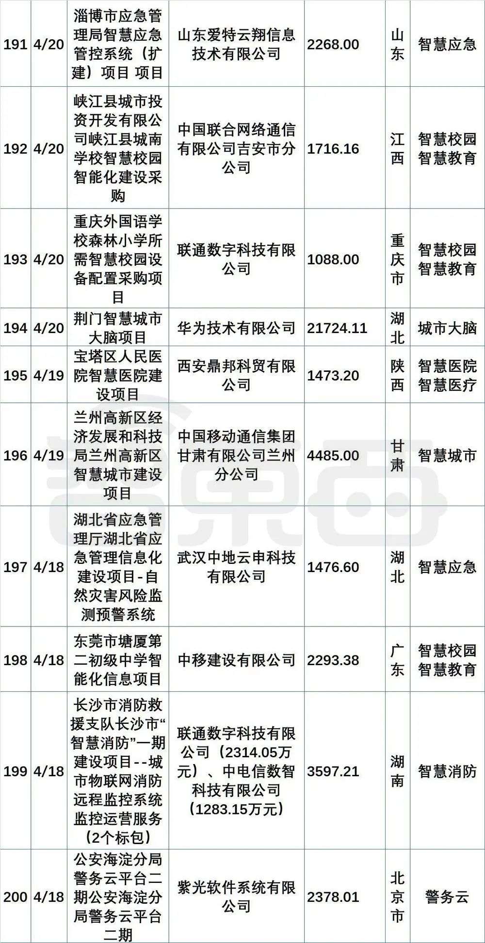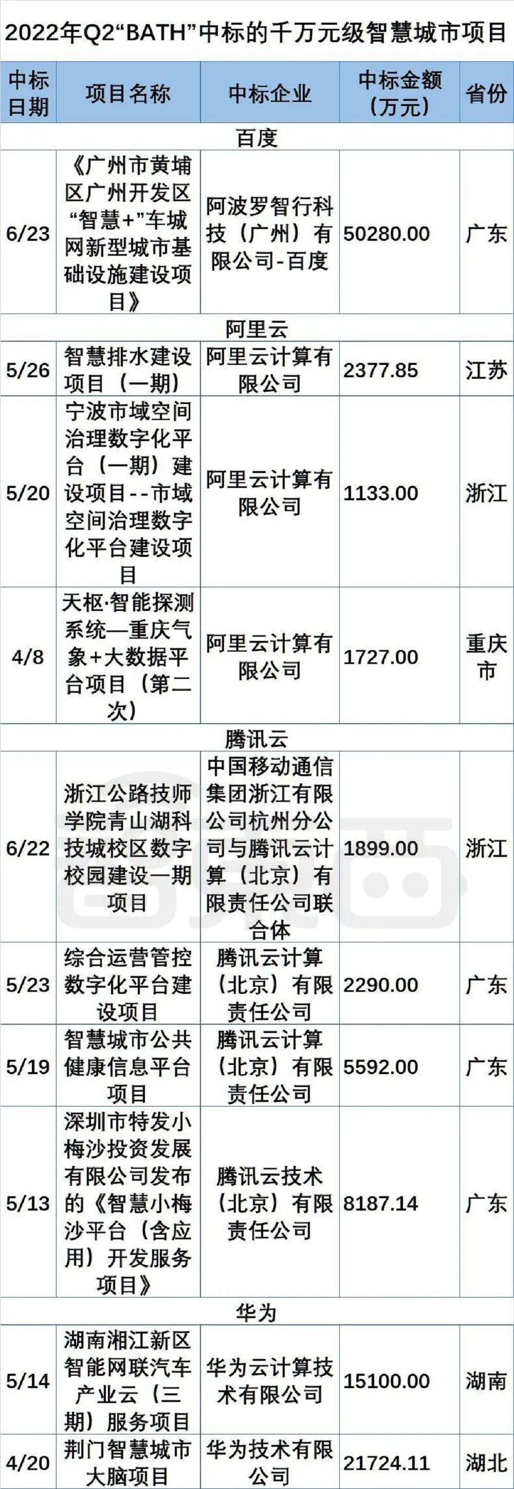 在第二季度,华为云直接中标的千万级智慧城市项目至少有2个:荆门智慧城市大脑项目和湖南湘江新区智能网联汽车产业云(三期)服务项目单一来源采购,中标金额分别为2.17亿和1.51亿元。