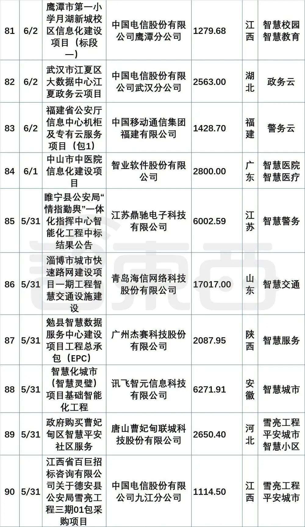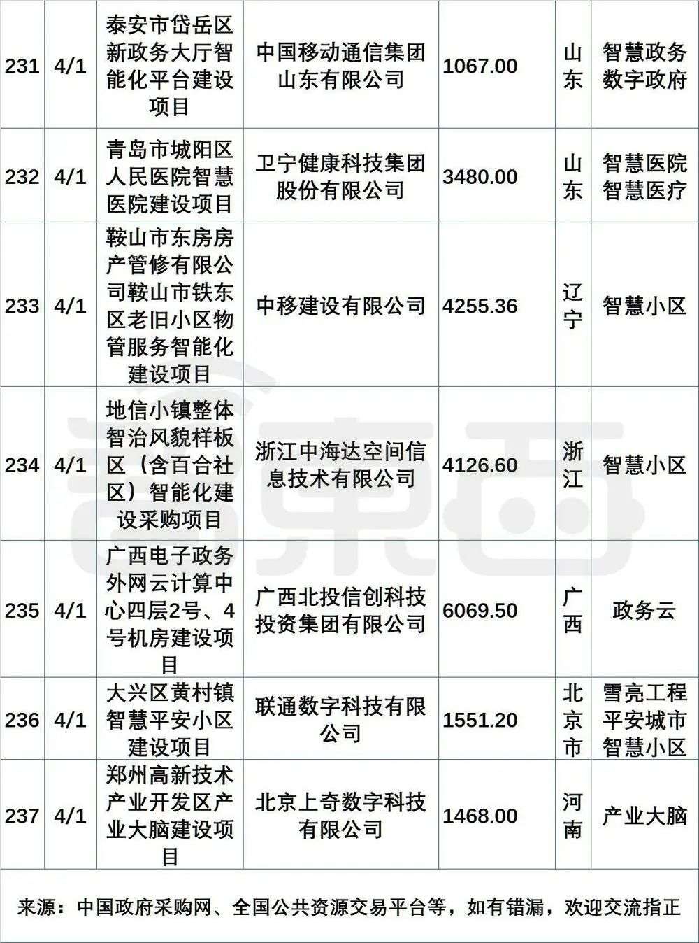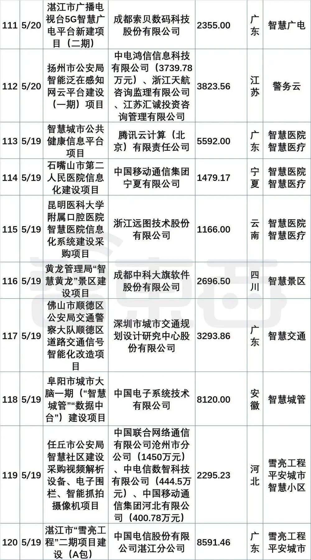 其实阿里云、腾讯云与华为一样,有一些它们投标的智慧城市项目目前处于中标候选人公示阶段,虽然各自位列其投标项目的第一名,但是还可能有一些变数,所以暂不算入。