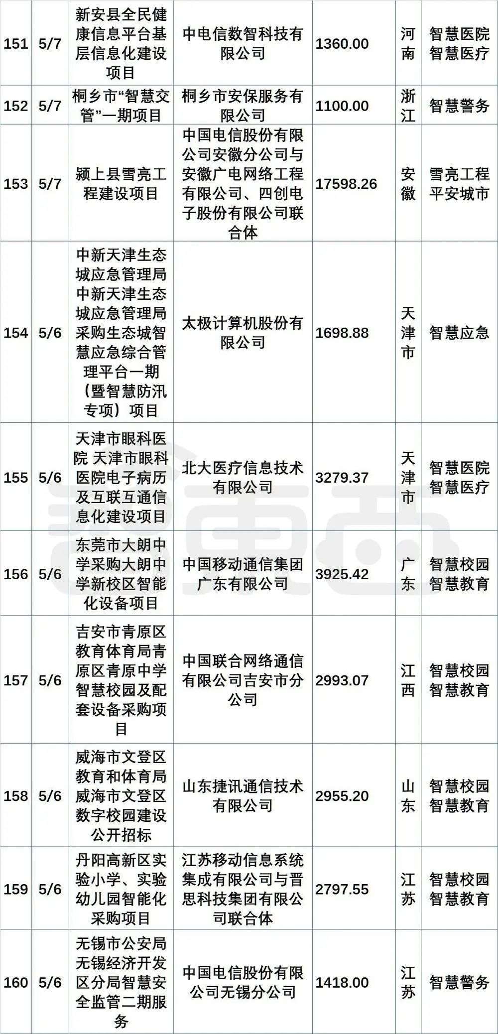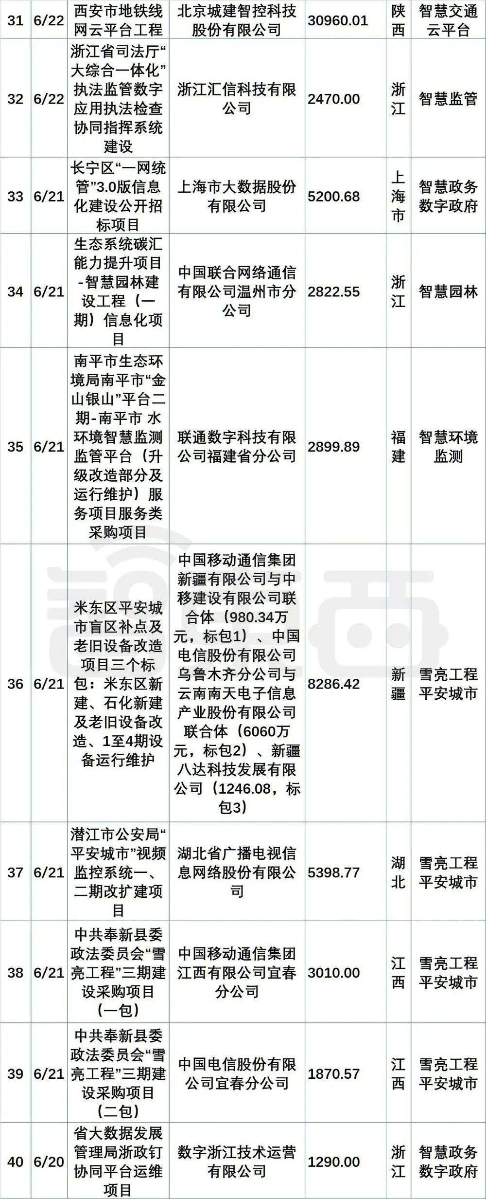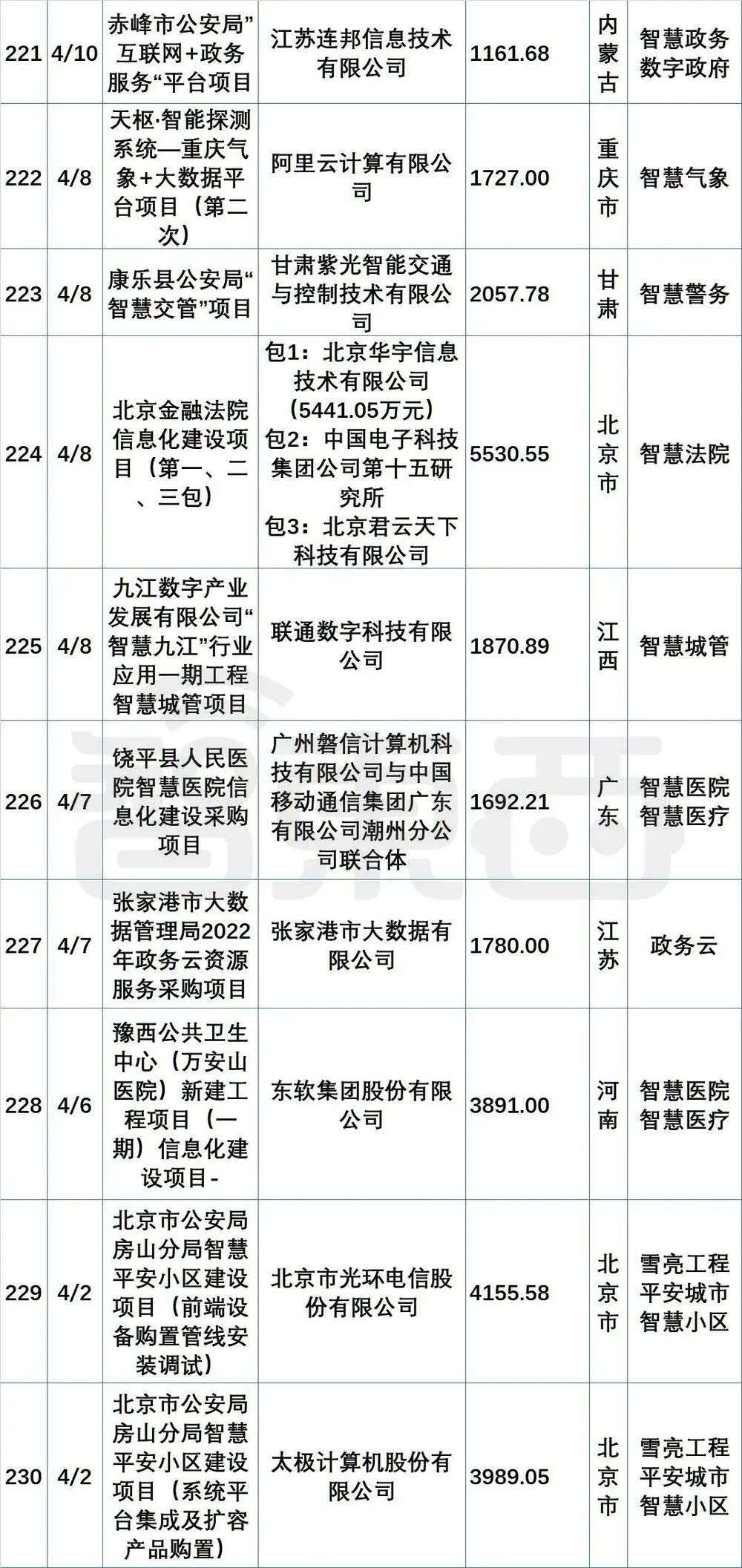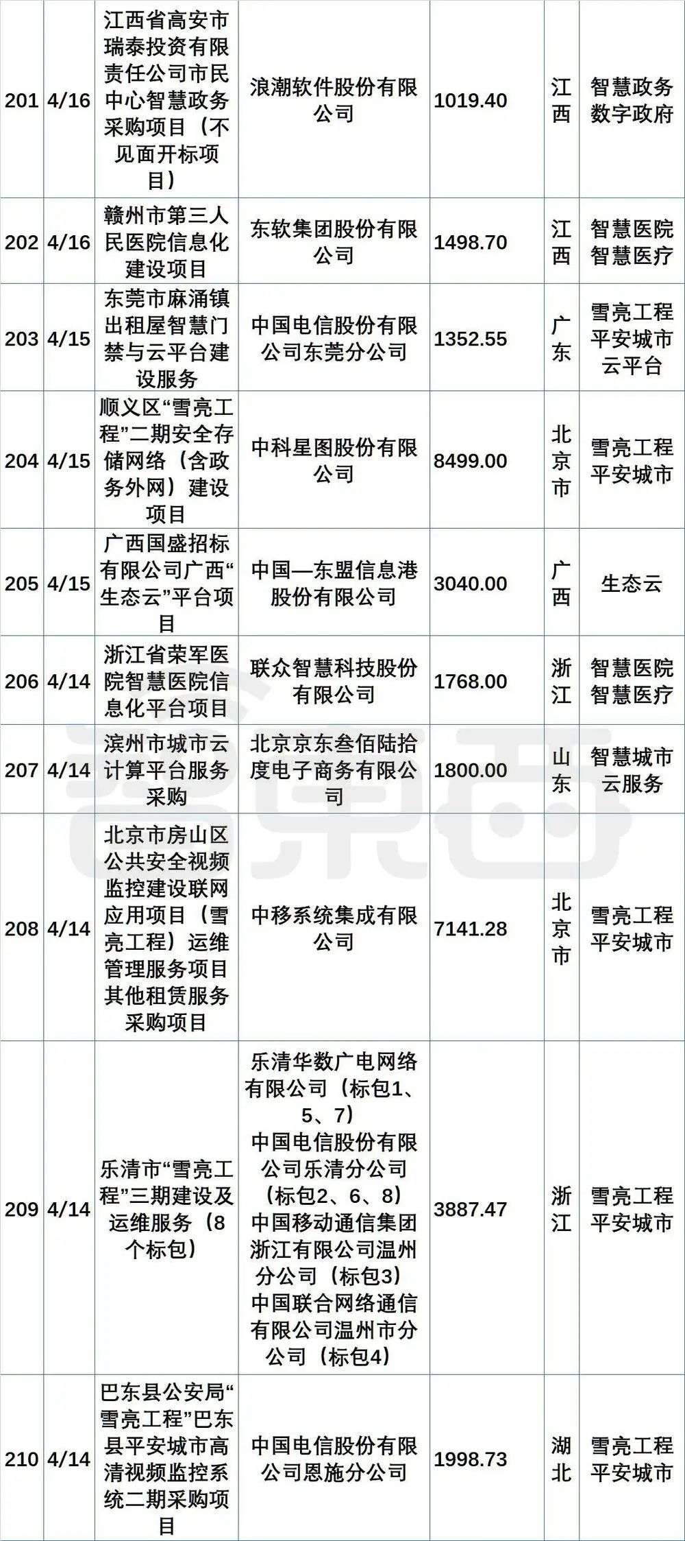 其实阿里云、腾讯云与华为一样,有一些它们投标的智慧城市项目目前处于中标候选人公示阶段,虽然各自位列其投标项目的第一名,但是还可能有一些变数,所以暂不算入。