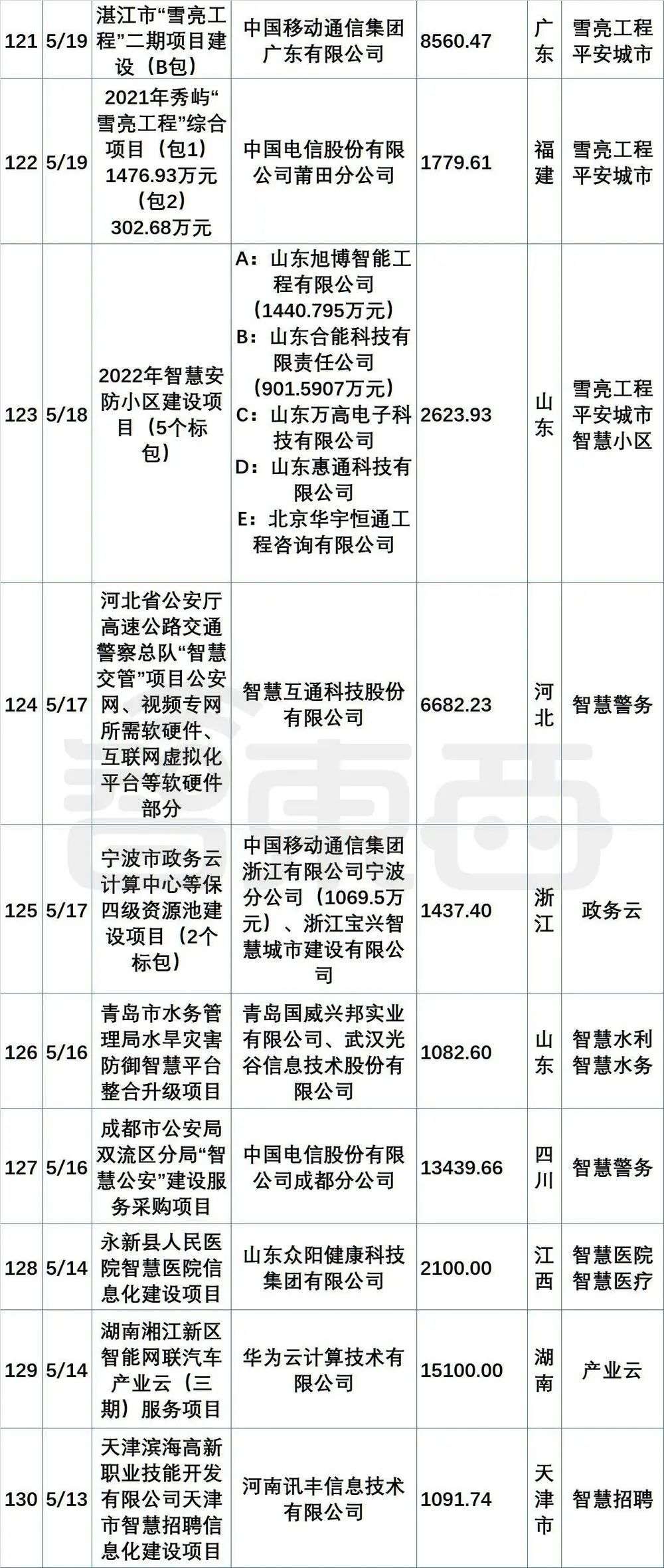 另外,6月23日,华为云被拟定为廊坊开发区政务云服务采购项目单一来源供应商,预算金额4200万元,目前该项目于7月8日发布采购合同公示。在此之前,华为云投标了深圳福田区的数字化转型第一阶段项目建设总承包单位项目,该项目的预算为3.5亿。华为的评标综合得分为候选中标供应商中的第一。