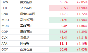 石油股持续上涨,戴文能源涨超2%,马拉松石油、康菲石油、雪佛龙、西方石油皆涨超1%。消息面上,伯克希尔哈撒韦在当地时间周一晚间提交的监管文件中披露,上周四和周五又投入超1亿美元,购买了190万股西方石油股票,持股比例升至19.4%。