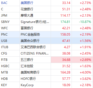 银行股普涨,瑞士信贷涨超4%,巴克莱、高盛涨超3%,美国银行、花旗银行涨超2%。