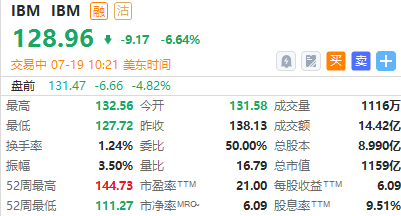 IBM $IBM 盘初跌超6%,Q2净利润13.92亿美元不及预期,预计全年毛利率将从去年同期的55.2%降至53.4%。