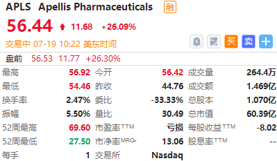 个股方面,Apellis Pharmaceuticals Inc $APLS 涨幅超过25%,此前该公司宣布,美国食品和药物管理局(FDA)已接受并授予Pegcetaco plan新药申请优先审查称号。
