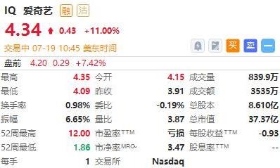 华盛资讯7月19日消息,爱奇艺盘中涨超11%,消息面上,7月19日,爱奇艺和抖音集团达成合作,将围绕长视频内容的二次创作与推广等方面展开探索。