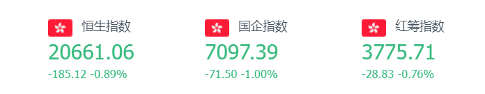 截至周二收盘,恒生指数跌0.89%,报20661.06点;国企指数跌1%,红筹指数跌0.76%。恒生科技指数跌1.48%,百度跌2.97%,阿里跌2.89%,小米跌1.82%,比亚迪电子跌8.93%,高伟电子跌3.69%,舜宇光学科技跌3.69%。