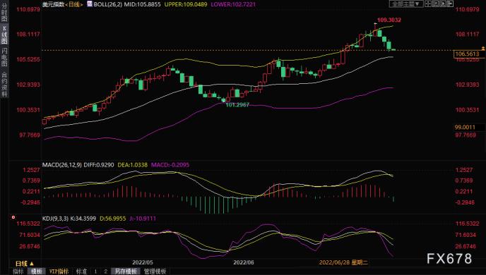 美元的下跌一方面是因为市场对美联储7月加息100点预期的降温,另一方面是市场对欧元区经济衰退的担忧也略微有所降温,而且本周欧洲央行大概率会加息25个基点,而且加息50个基点的预期有所升温。
