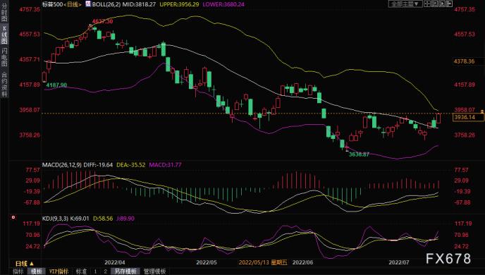 截止周二收盘,道琼斯工业指数上涨754.44点,或2.43%,至31827.05点;标普500指数.涨105.84点,或2.76%,至3936.69点;纳斯达克指数大涨353.10点,或3.11%,至11713.15。