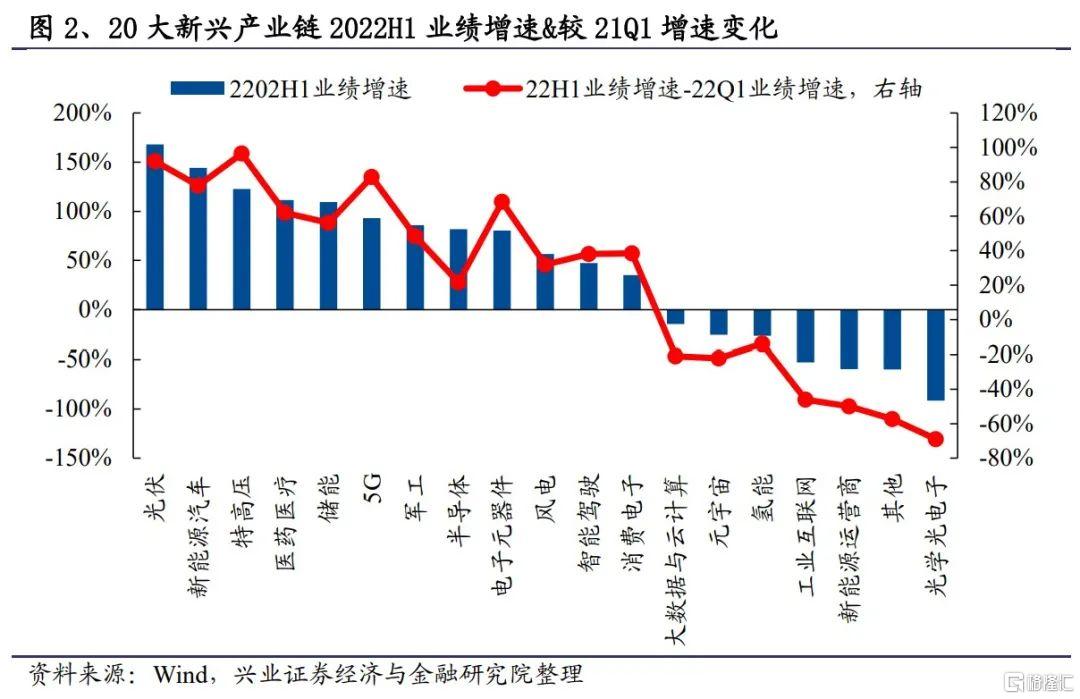 结合业绩绝对增速和环比改善幅度来看,新兴产业链呈现出“强者恒强”的特性。