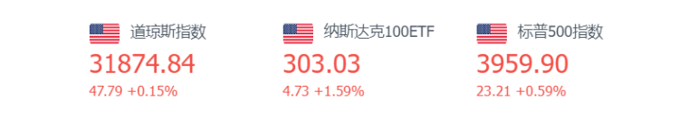 美股周三收高,道指涨47.79点,涨幅为0.15%,报31874.84点;纳指涨184.50点,涨幅为1.58%,报11897.65点;标普500指数涨23.21点,涨幅为0.59%,报3959.90点。特斯拉收高0.8%,英伟达收高4.8%,Netflix收高7.36%,阿里收跌0.75%。