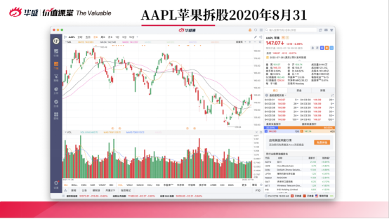 再以苹果为例,2020年这个时间段有个一拆四,可以看到有一波非常明显的拉升,但在拆股完之后可以看到又跌了回去,之后9 月份至 12 月一个季度的震荡下跌。也正是说在这个周期里面,股价没有涨,而是跌的,所以投资者们也可以选择做空试一试,但你要选择做多是不大可能的。拆股之后一定会回调/震荡,拆股是一个时间明确的点位,是完全充分,在周期内赚到的钱都会回去。