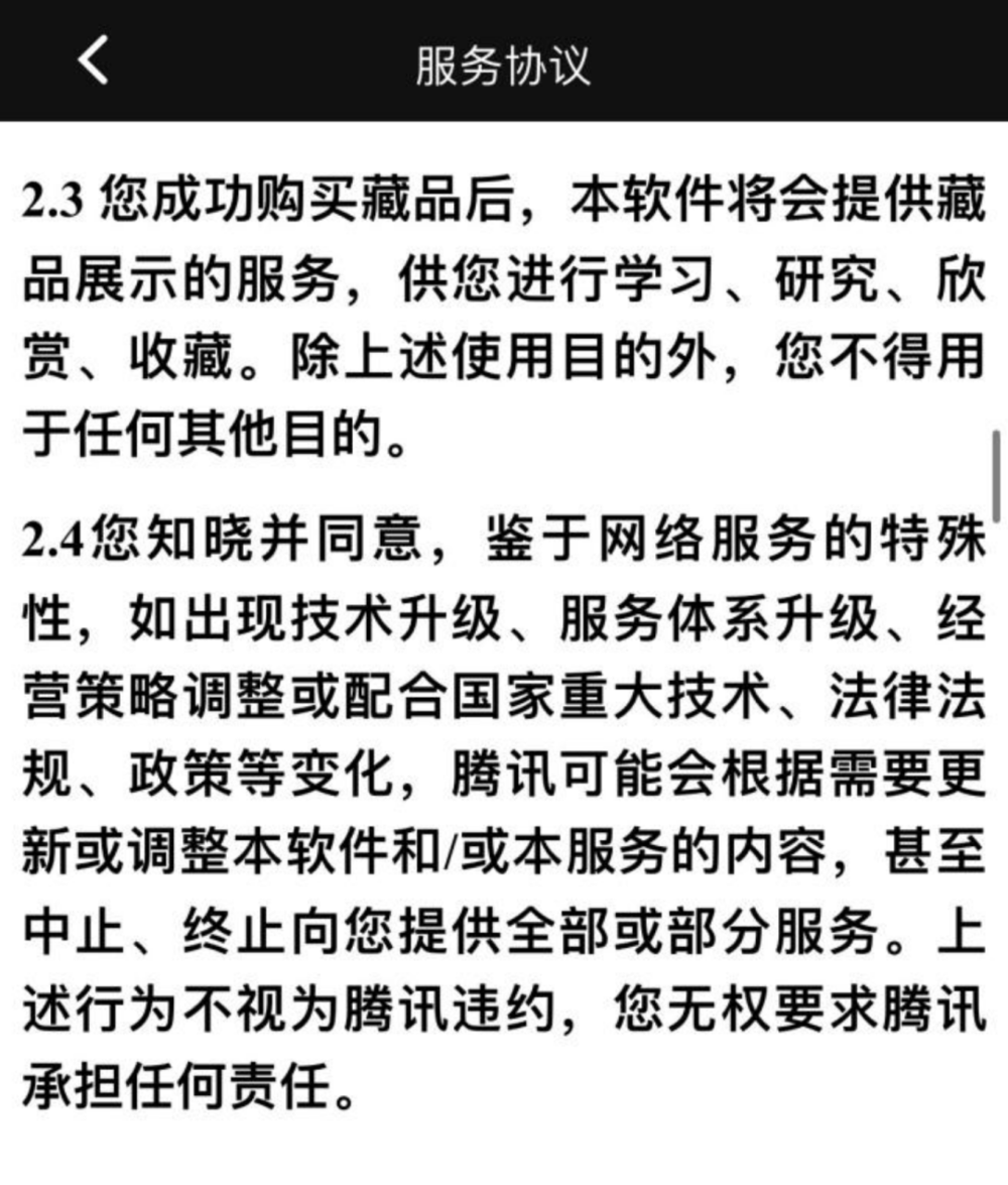 截至目前,腾讯方面目前并未公示后续已购买的数字藏品将如何处理。