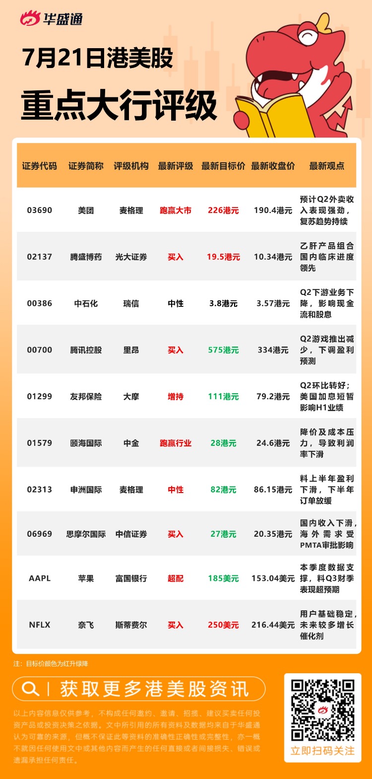 里昂发布研究报告称,重申腾讯“买入”评级,将2022-23年调整后净利润预测下调7%,目标价从600港元下调至575港元。公司第二季各项业务继续面临严峻挑战,预测总收入将同比下降2.2%至1353亿元人民币。