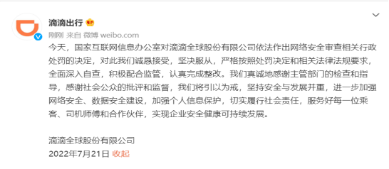 滴滴粉单市场盘前一度涨超6%,网信办对滴滴处人民币80.26亿元罚款