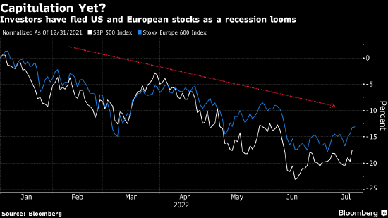 Sanford C. Bernstein策略师表示,尚未看到股市彻底缴械投降的迹象。这一观点与美国银行调查显示的结果相反。