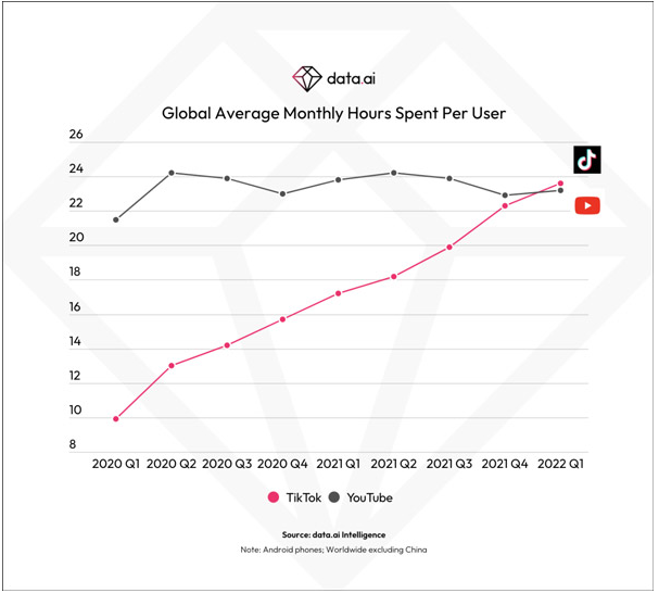 实际上除了美国本土的企业,来自中国的竞争对手Tiktok凭借源源不断短视频资源,迅速将用户和广告商吸引过去。移动研究机构Data.ai表示,TikTok今年第一季度的每月人均使用时长达到23.6小时,首次超越Alphabet旗下视频网站YouTube的23.2小时。作为回应,Instagram、Facebook、YouTube和Snap都添加了类似的垂直视频源。