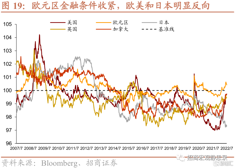 欧元区的金融条件已显著收紧(图19)。本轮周期中,欧元区的主权债务风险相对可控,风险点在于部分成员国的房地产部门,以及非银金融机构对于另类投资——特别是房地产、加复杂杠杆的大宗商品衍生品和加密货币——的风险敞口。