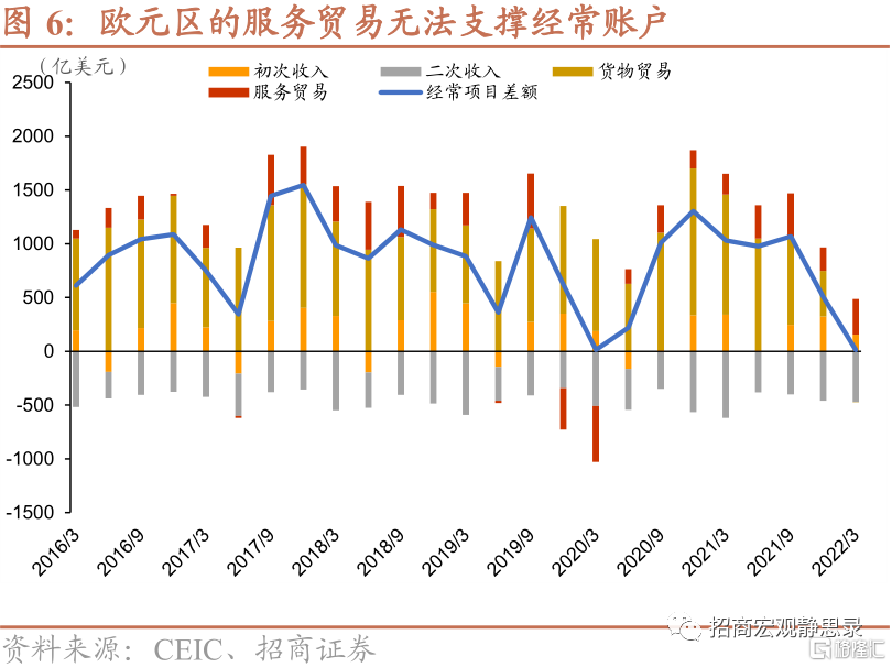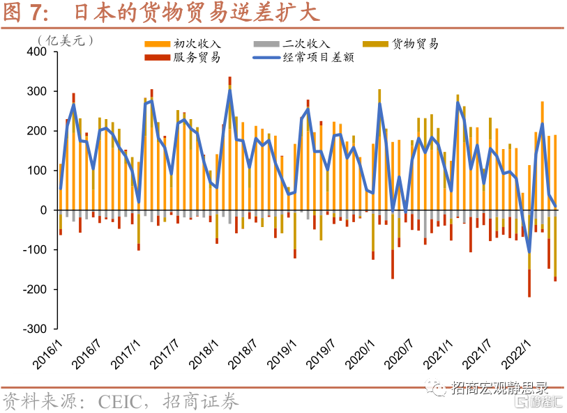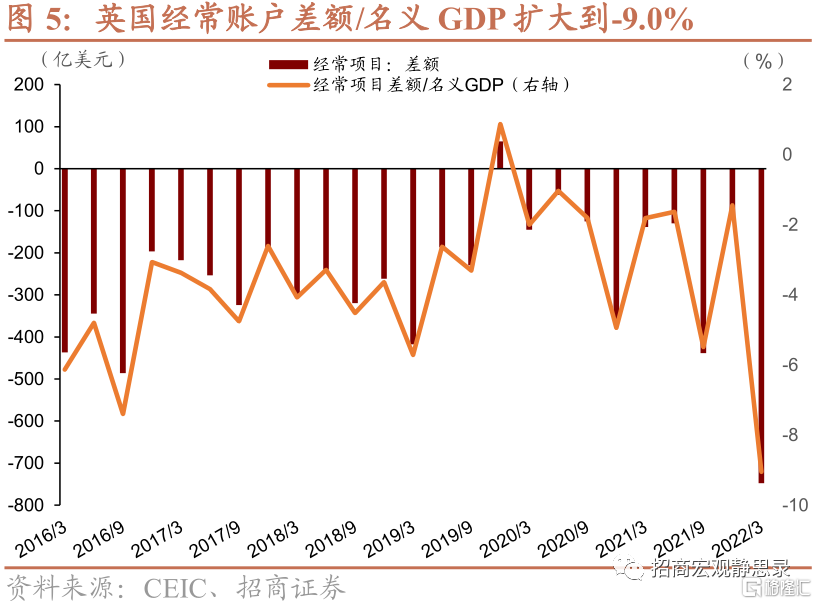 一个关键催化剂是德国的5月初步数据显示其自1991年来首次出现贸易赤字,再次凸显了欧美作为能源进口/出口国的前景差异。作为美元的背面,欧元区、日本和英国的经常账户在持续恶化。欧元区方面,尽管服务贸易前景良好,在能源进口成本上升、对俄罗斯出口减少和国内局部疫情等因素下,货物贸易转为逆差,致使22Q1经常账户顺差降至11.18亿美元,同比下降98.92%;经常项目顺差占当季名义GDP的比重为0.03%,去年同期为2.96%。英国方面,22Q1经常账户逆差747.66亿美元;经常项目逆差占当季名义GDP的比重为9.05%,去年同期为逆差1.81%。日本方面,22Q1经常账户顺差降至254.31亿美元,同比下降53.61%;经常项目顺差占当季名义GDP的比重为2.19%,去年同期为4.3%(图4-7)。