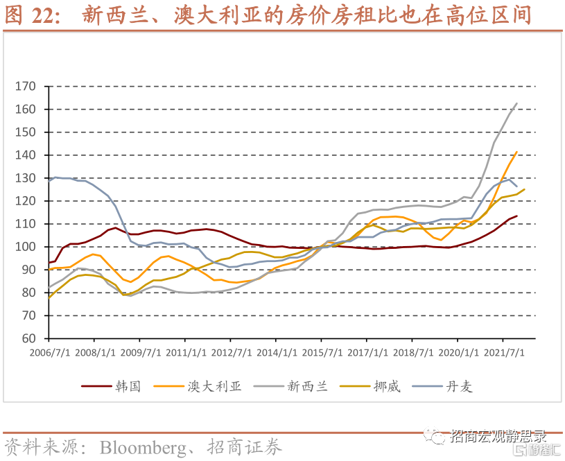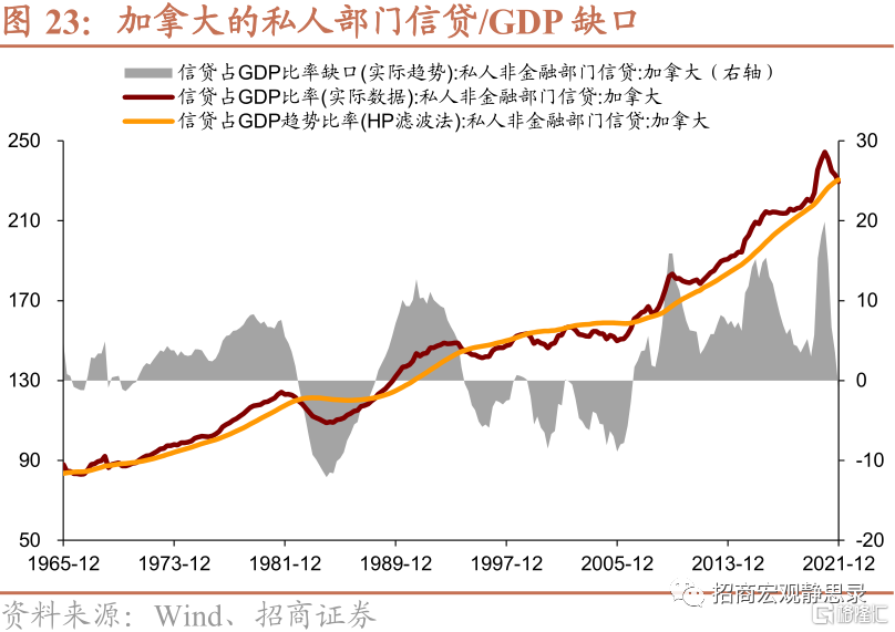 另外,加拿大、澳大利亚和新西兰的房价房租比也已升至超过2007年金融危机的水平(图22-23)。其中,加拿大的房价房租比在风险高位,私人非金部门信贷/GDP亦为正缺口。