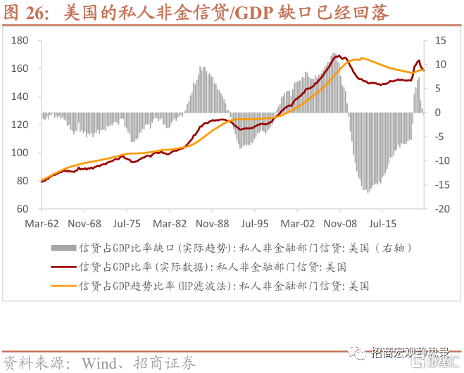 美联储认为美国房地产行业的整体风险相对可控,因为房价的快速上涨具有一定程度的基本面支撑,贷款价值比和债务收入比等宏观审慎指标仍保持稳定,未见近期房价上涨是由投机活动激增、抵押贷款承销标准下降或增加使用高杠杆贷款产品造成的明显证据。从私人非金部门信贷/GDP缺口来看,随着经济强劲复苏,已回落到-0.5%的水平。