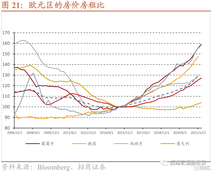 欧元区的整体主权债务风险相对可控,但是部分成员国的房地产部门在长期低利率环境中积累了风险。葡萄牙等部分成员国的房价房租比偏离趋势水平,而且,非银金融机构对于另类投资——特别是房地产、加复杂杠杆的大宗商品衍生品和加密货币——存在一定的风险敞口。