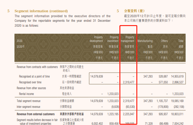 根据其2021年报显示,其物业管理业务的收入在2021年为23.19亿港元。