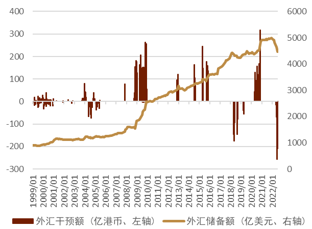 注:正数(负数)表示港币卖出(买入)型外汇干预