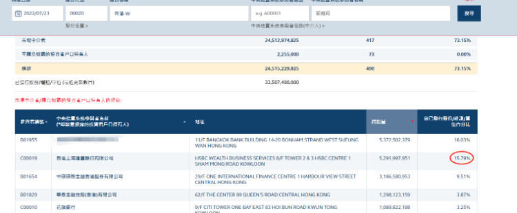 据港交所中央结算系统持股记录(CCASS)数据披露,7月21日,汇丰银行持有商汤股份5.49亿股,7月23日,汇丰银行持仓52.92亿股,增持了约47.43亿股,从占已发行股份1.64%大幅增加至15.79%,按照截止发稿时商汤的2.39港元每股计,汇丰增持了约113.81亿港元商汤股份。
