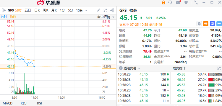 芯片股多数走低,截至发稿,格芯跌超6%,报45.15美元。联电跌超3%,英伟达、美光科技等跌超2%。