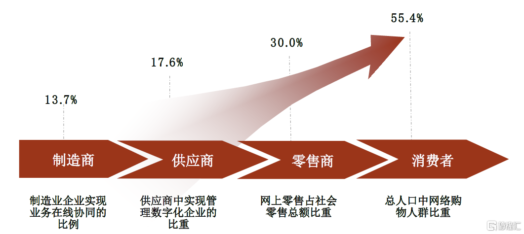 数字技术的发展使得制造供应链被数字化改造成为可能。近年来随着大数据、物联网、云计算、机器人、AR/VR、区块链等新技术的发展,数字化正在改变供应链。供应链数字化提高供应链分析决策和智能执行的能力,过去这个协同决策更多依赖高层的经验和沟通技巧,以至于低效、粗放和高成本。根据麦肯锡研究,供应链数字化水平的提高有望缩短市场交货期20%-50%,降低供应链管理成本60%,降低库存持有成本20%-50%。