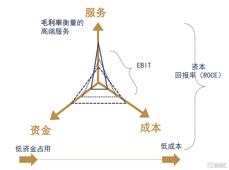 资料来源:Supply Chain Strategy and Financial Metrics. The Supply Chain Triangle of Service, Cost and Cash(Prof. dr. Bram,2017),中金公司研究部