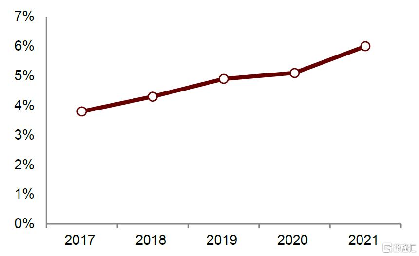 制造业降本增效倒逼制造供应链物流升级。随着制造业的发展,生产企业的利润来源逐步从第一利润源(低人工和材料成本,但成本上行压力大)和第二利润源(扩大市场规模,抢占市占率,但边际投入产出更低)转向第三利润源(物流)。根据国家统计局的数据,近10年中国工业企业的利润承压,2019年中国工业企业营业收入利润率为6.2%,较2010年下滑了1.1ppt(2020年和2021年受疫情影响,数据或不可比)。