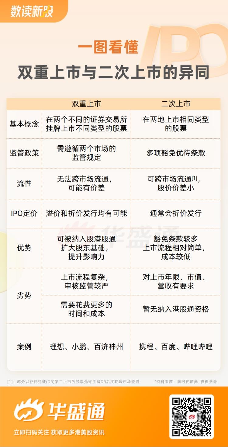 双重主要上市,是指两个资本市场均为第一上市地。两市场股票无法跨市场流通,股价表现相对独立,可能产生价差;而二次上市是指公司在两地上市相同类型的股票,通过国际托管行和证券经纪商,实现股份跨市场流通。机构表示,双重上市的监管标准更为严格,双重上市需同时接受两地监管如果企业在两地双重上市,公司需要完全遵守两地交易所的规定,和本地上市没有太大区别,如A+H股等。根据港交所主板上市规则,目前有盈利测试、市值/收益/现金流测试、市值/收益测试等三项。