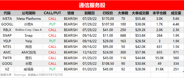 周一(7月25日),非必选消费、信息技术和通信服务板块相关个股出现较多活跃单,按照当日成交量排行,榜单TOP10分别如下:
