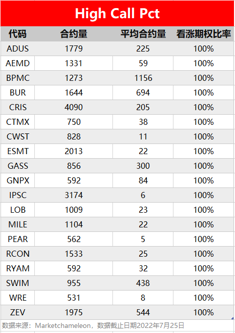 注:High Call Pct/High Put Pct是指相关期权标的当前看涨/看跌比例大小,该比值越高意味着该期权标的看涨/看跌的合约占比越高。
