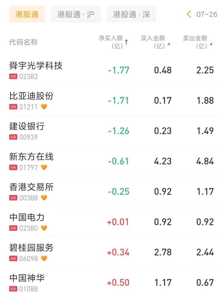 南下资金净卖出舜宇光学科技1.77亿港元,为今日卖出之最,净卖出比亚迪股份1.71亿港元。