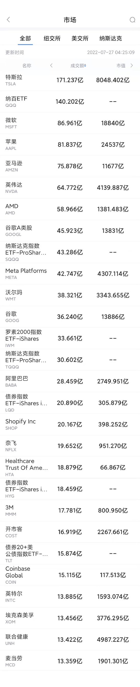以下为美股当日交易最活跃的20只股票(按成交额):