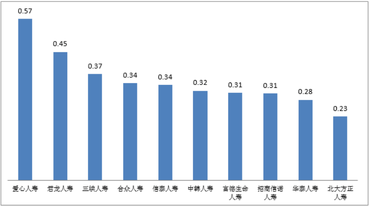 图六万张保单投诉量前10位的人身保险公司(单位:件/万张)
