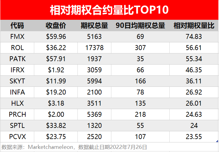 2.相对期权合约量比TOP10