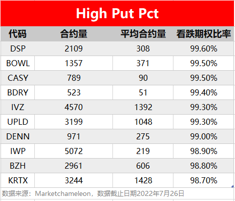 注:High Call Pct/High Put Pct是指相关期权标的当前看涨/看跌比例大小,该比值越高意味着该期权标的看涨/看跌的合约占比越高。