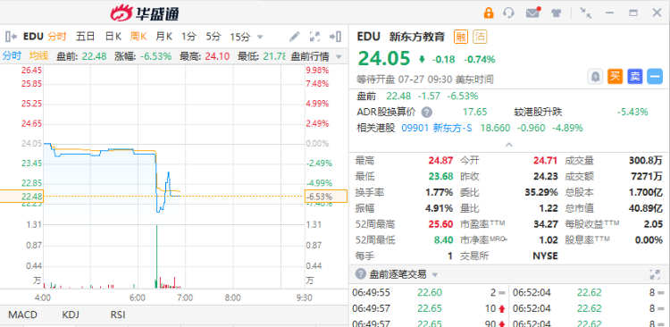 7、新东方教育盘前跌超6%,2022财年Q4营收同比降56.8%至5.24亿美元