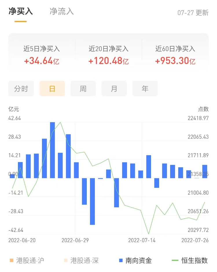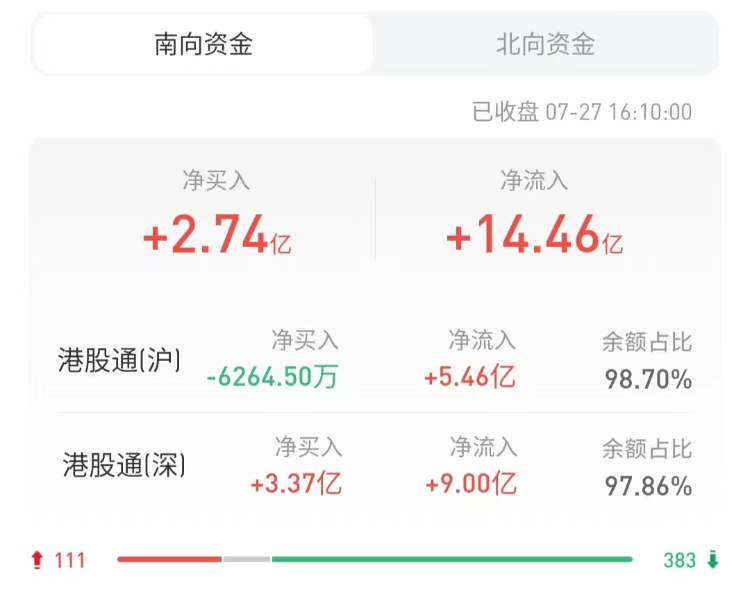 南下资金今日净买入港股2.74亿港元,其中港股通(沪)净卖出6264.5万港元,港股通(深)净买入3.37亿港元。上一交易日净买入港股10.12亿港元。