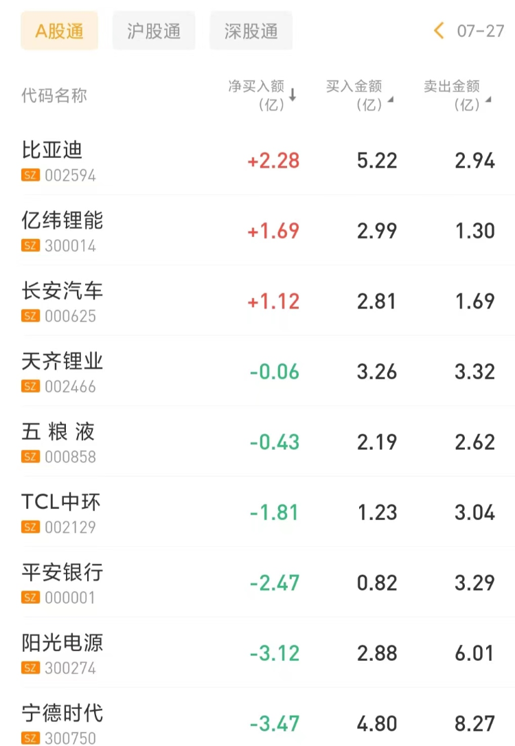 北上资金今日净买入比亚迪2.28亿元,为今日买入之最;净买入亿纬锂能1.69亿元。