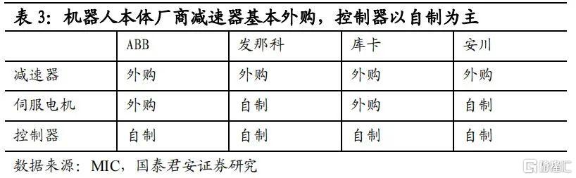 关节主要由减速器、电机、控制器等部件组成,其中机器人厂商的减速器外购为主,控制器自制为主。