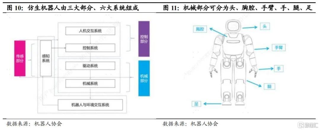 仿生机器人由三大部分(传感、控制、机械)和六大系统(感知、人机交互、控制、驱动、机械、机器人与环境交互)组成,其中机械部分是其他几个部分的基础,机械部分有驱动系统和机械系统;按部位分类,机械部分又可以分为头、胸腔、手臂、手、腿和足等。